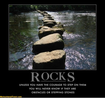 As we navigate our path we encounter obstacles (our quote calls them “rocks”). These obstacles offer us a choice. Do we step on or over them OR do we let them stop us. If the rocks in your path have created a wall then dismantle it. One rock at a time and build a path, a bridge or even stairs. Don’t be afraid of a little hard work because after all your dreams are worth it!