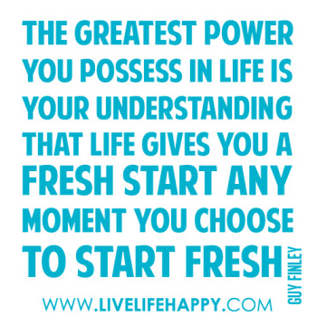 You can do anything you set your mind to. If something isn’t working for you, make changes, start over. Challenge yourself to a fresh start. Don’t be afraid to fix what needs fixing or try a different approach. There are no expiration dates or time limits on a fresh start!