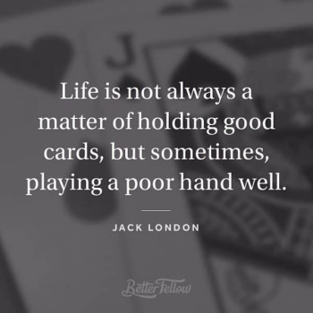 This quote reminds me of the old Kenny Rogers song “The Gambler” which contained some which has some great advice about life. If you have never heard it check it out. Life isn’t always a full house and most times we must make the best of the hand that we are dealt until something better comes along, and it will. Until then work with what you have and don’t be afraid to fold.